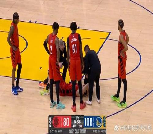在比赛进行到第四节时,杨瀚森获得出场机会。在一次进攻回合,杨瀚森倒地拼抢,但后脑勺不慎撞到勇士后卫威尔-理查德膝盖上,倒地后杨瀚森非常痛苦,迟迟未能起身。开拓者医务人员及时进入场内进行检查,在场的开拓者队友也都围绕在杨瀚森身旁关切地关注着他的情况。